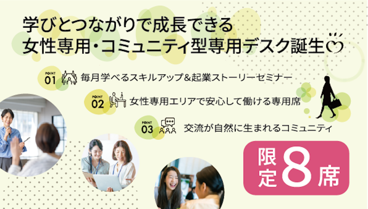 【限定8席】女性専用・コミュニティ型専用デスクプラン開始【幕張】