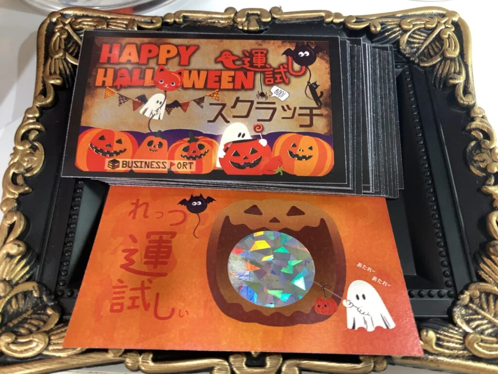 受付で「ハッピーハロウィン運試し」として手作りのスクラッチにチャレンジし、あたりが出た方には、ハロウィン限定のお菓子をプレゼント。 はずれてしまった方にも、参加賞をお渡ししました。