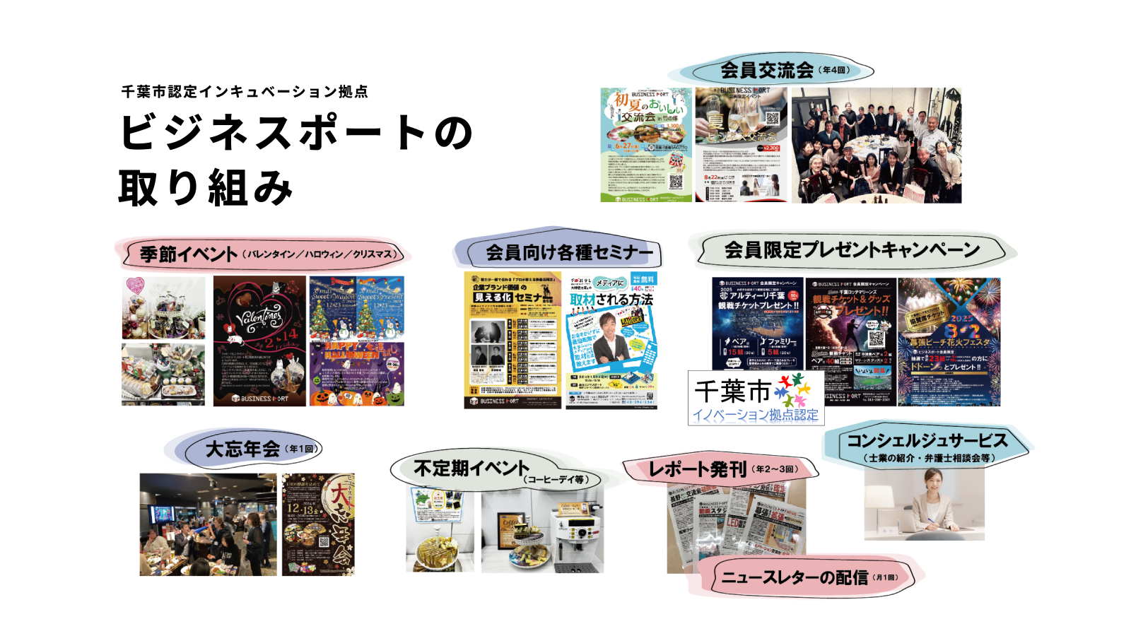 幕張ビジネスポートは、千葉市が実施する「千葉市認定インキュベーション事業」において、イノベーション拠点として正式に認定されています。