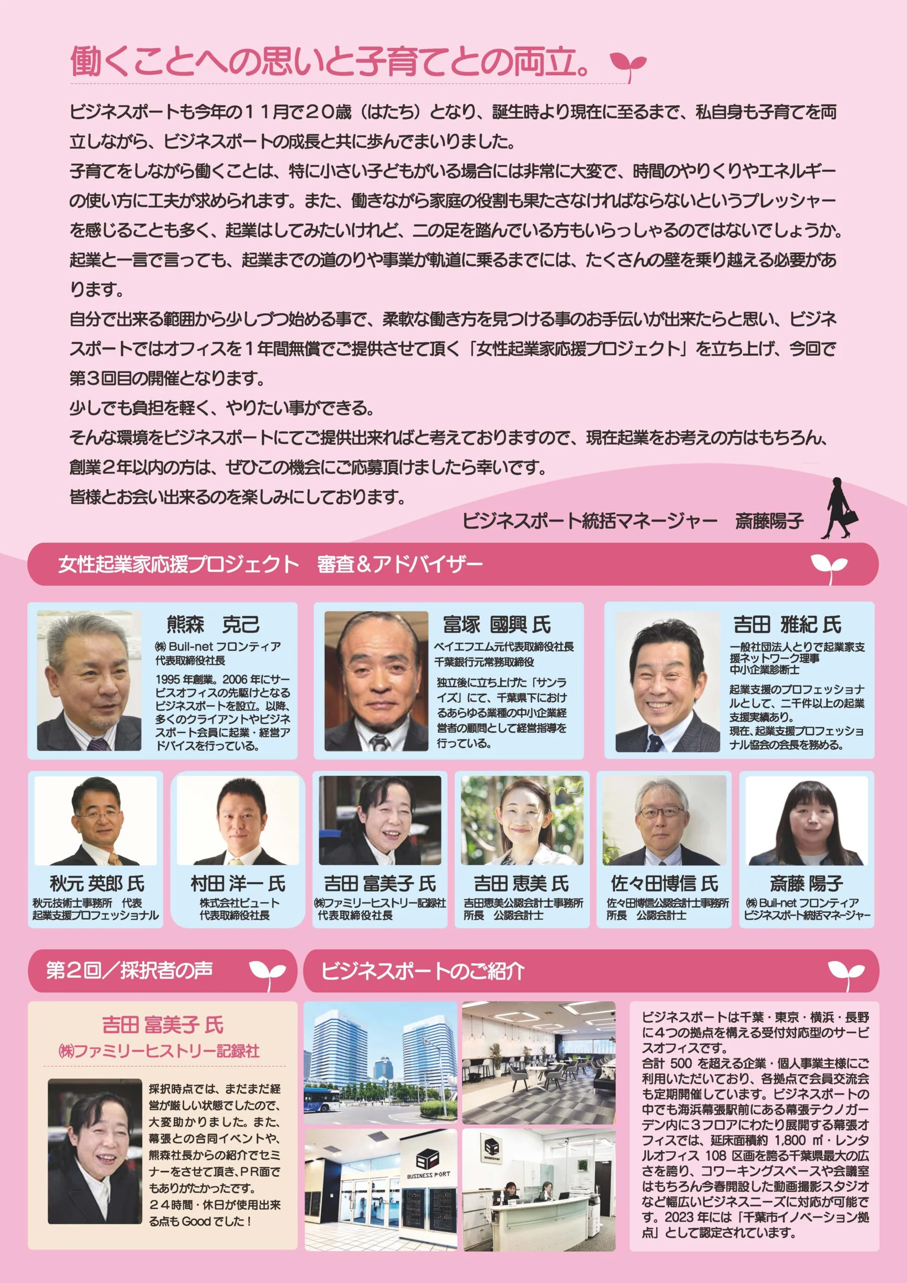 幕張ビジネスポートにて地域活性化に向け女性起業家を応援するプロジェクトを再始動します。 こちらのプロジェクトは今回で第3弾目となり、約7年ぶりの開催となります。
