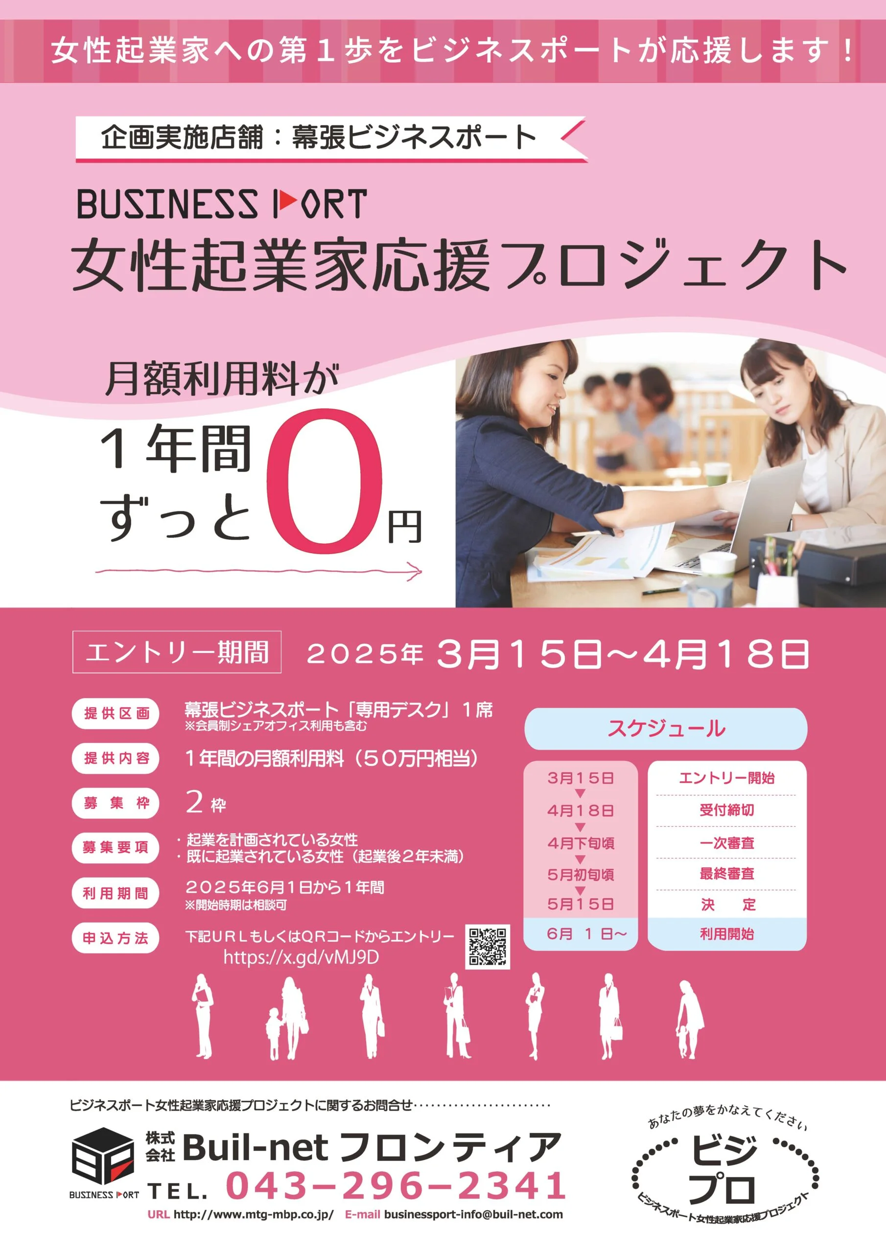 女性でも安心して利用できる受付常駐型サービスオフィス「幕張ビジネスポート」で提供されている「専用デスクプラン」の月額利用料を1年間0円にし、事業に専念出来る快適なオフィス環境を無料提供することで、地域で起業を志す女性起業家の夢の第一歩を応援します。